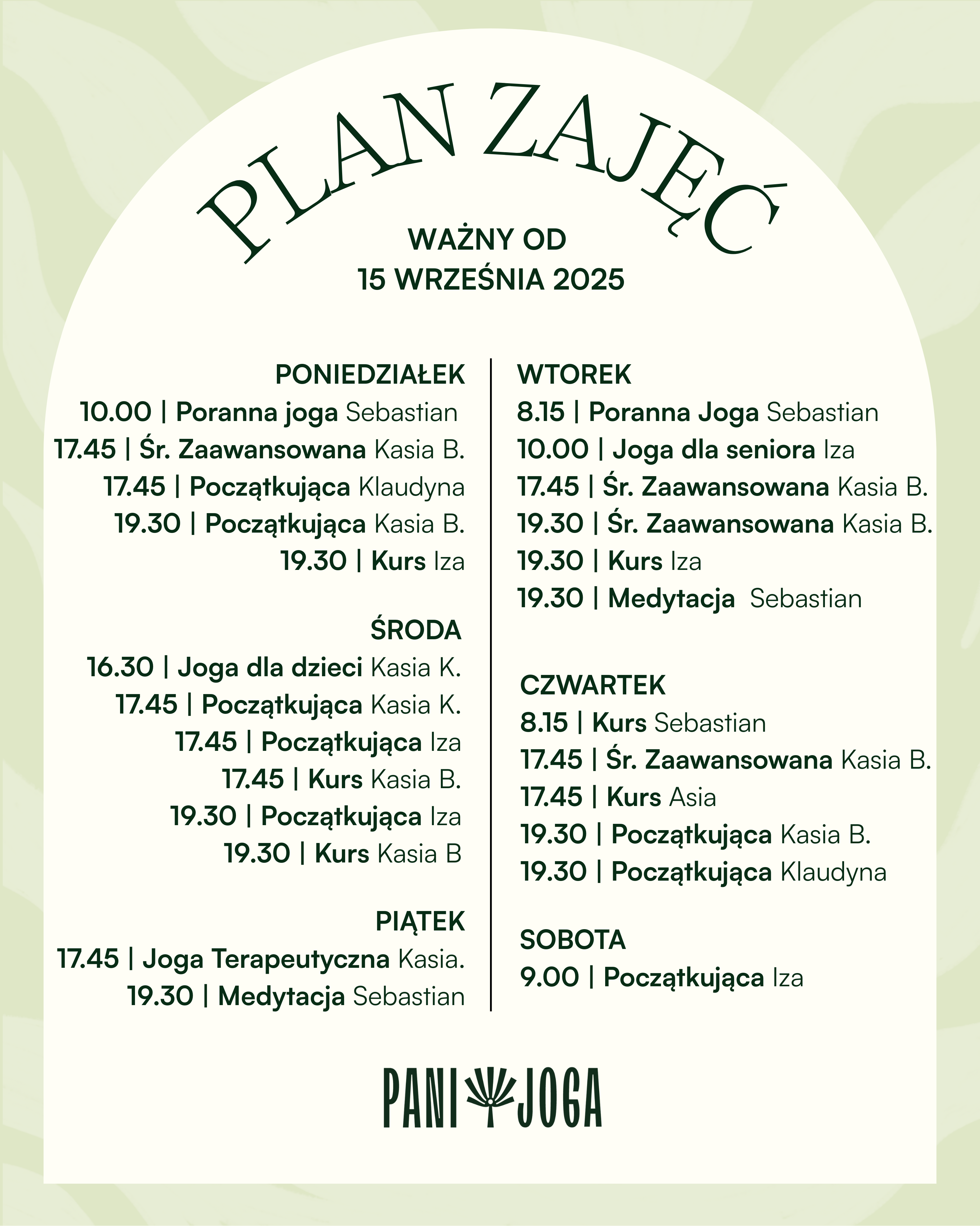 Sprawdź dostępność zajęć i wyślij SMS na numer +607804965 lub wiadomość na profil szkoły na Facebooku albo Instagramie. Napisz, do której grupy chcesz się zapisać i jakie masz doświadczenie z jogą.